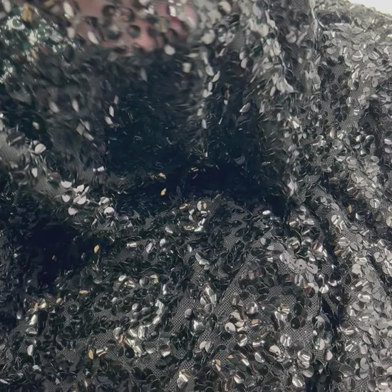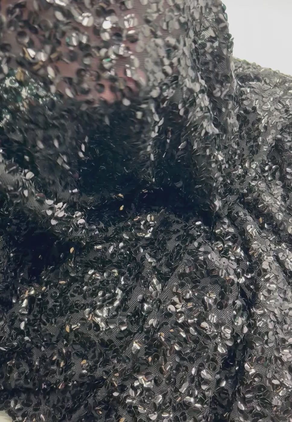 Add a touch of glamour to your next project with our Black Large Sequin Detail Stretch Mesh Fabric. This high-quality sequin fabric features a shimmering gold color that is sure to catch the eye. Perfect for costumes, accessories, and more, this fabric will add a luxurious touch to any design.