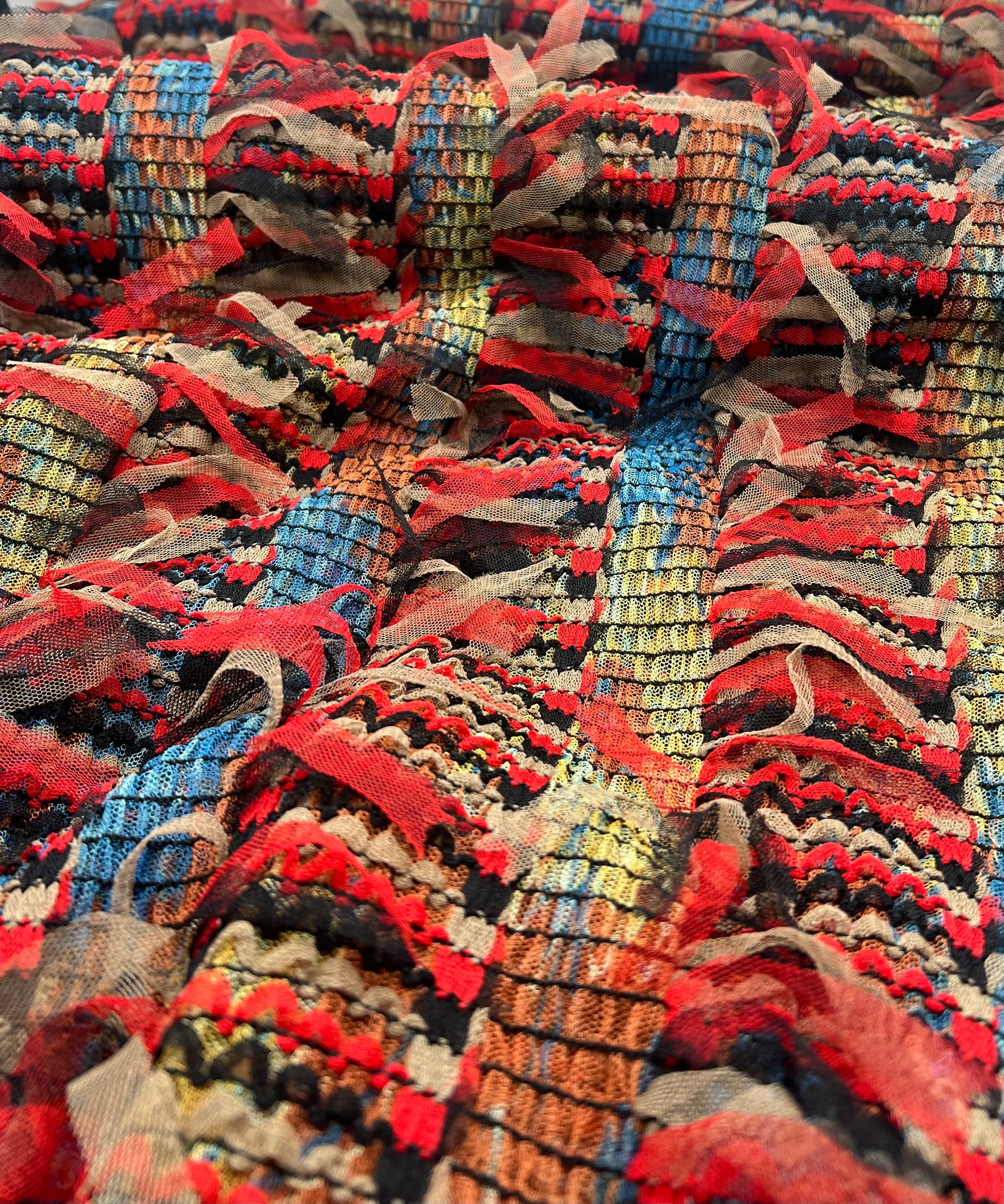 Colorful Mix Textured Mesh Tassel Fabric 2 Way Stretch