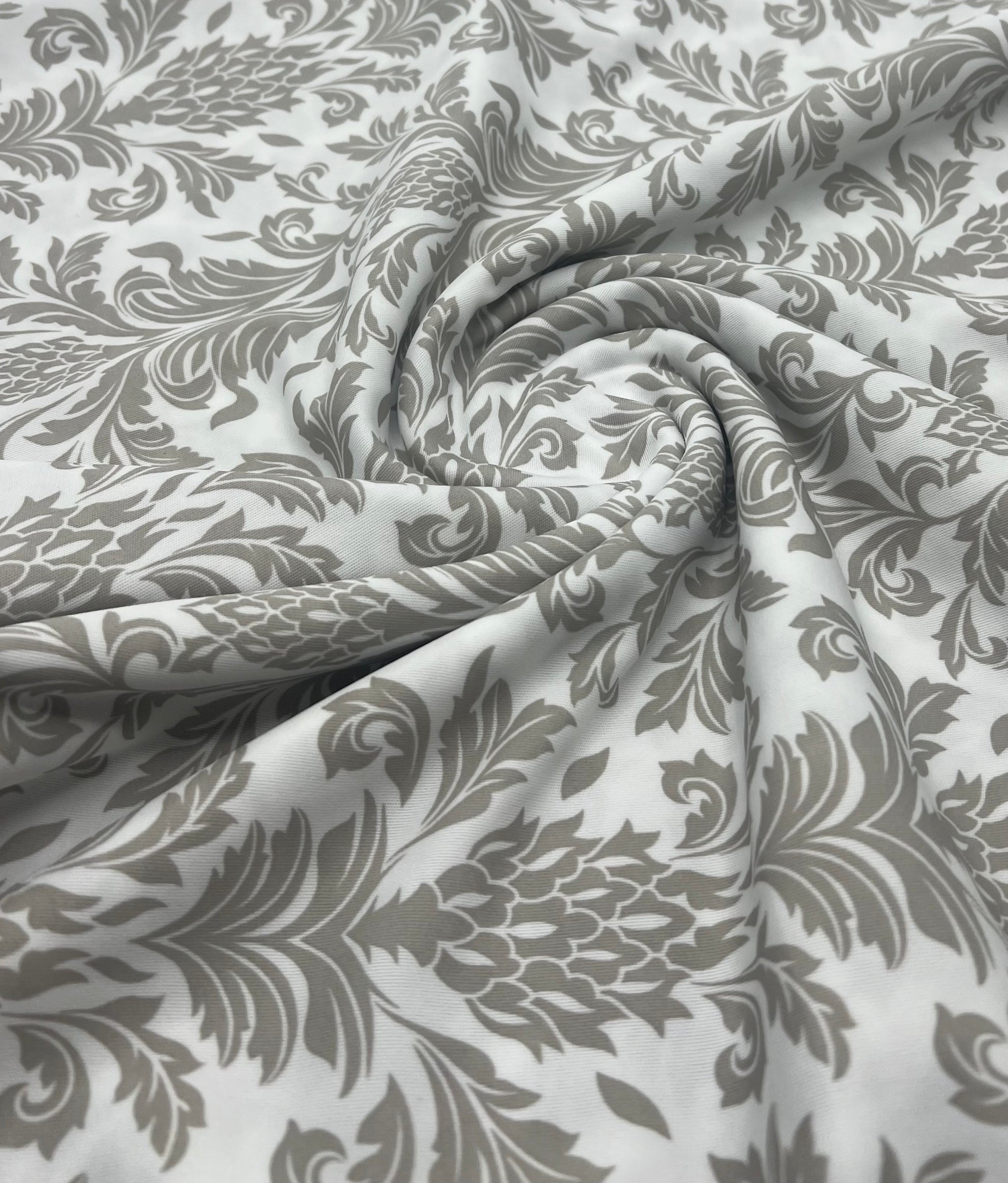 Ivory Grey Floral Lightweight Stretch Fabric
