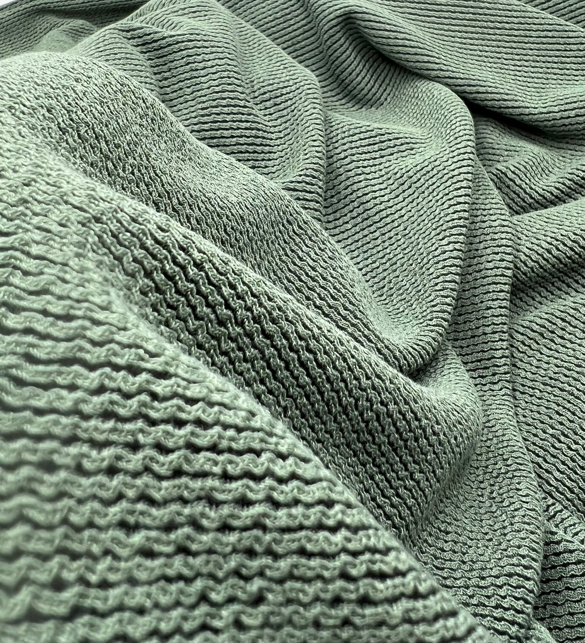 Khaki Green & Black Crinkle Rope Rib Stretch Fabric