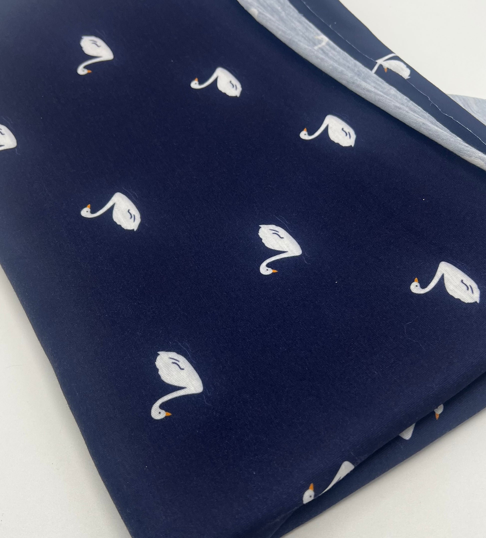 Navy Swan Print Spun Poly Stretch Fabric is a medium weight fabric between basic polyester and cottunique. It looks and feels like a cotton jersey and is a lot more durable. This fabric is very soft on the skin and perfect for all sorts of clothing such as maxi dresses, loungewear, trousers and tops etc,