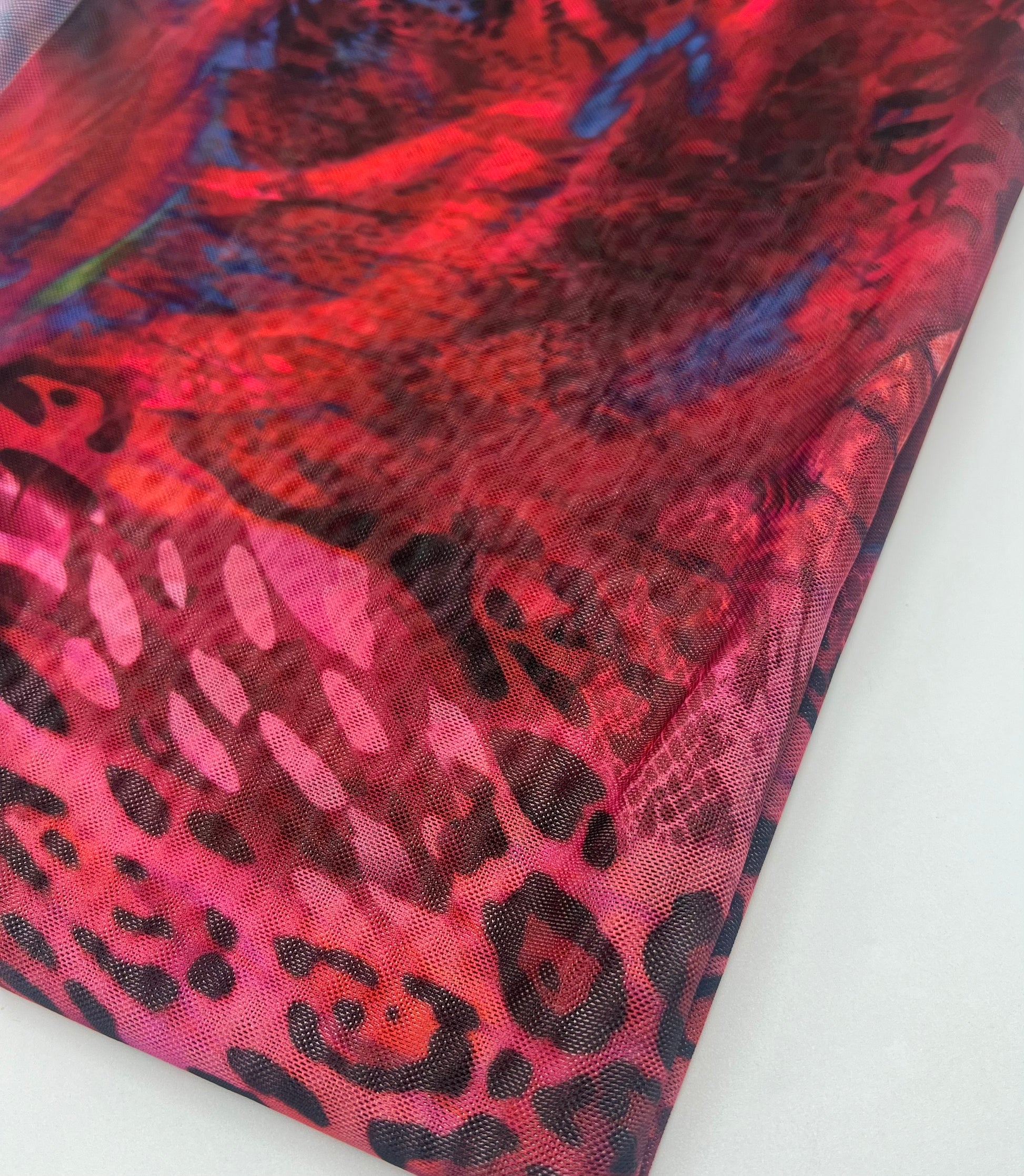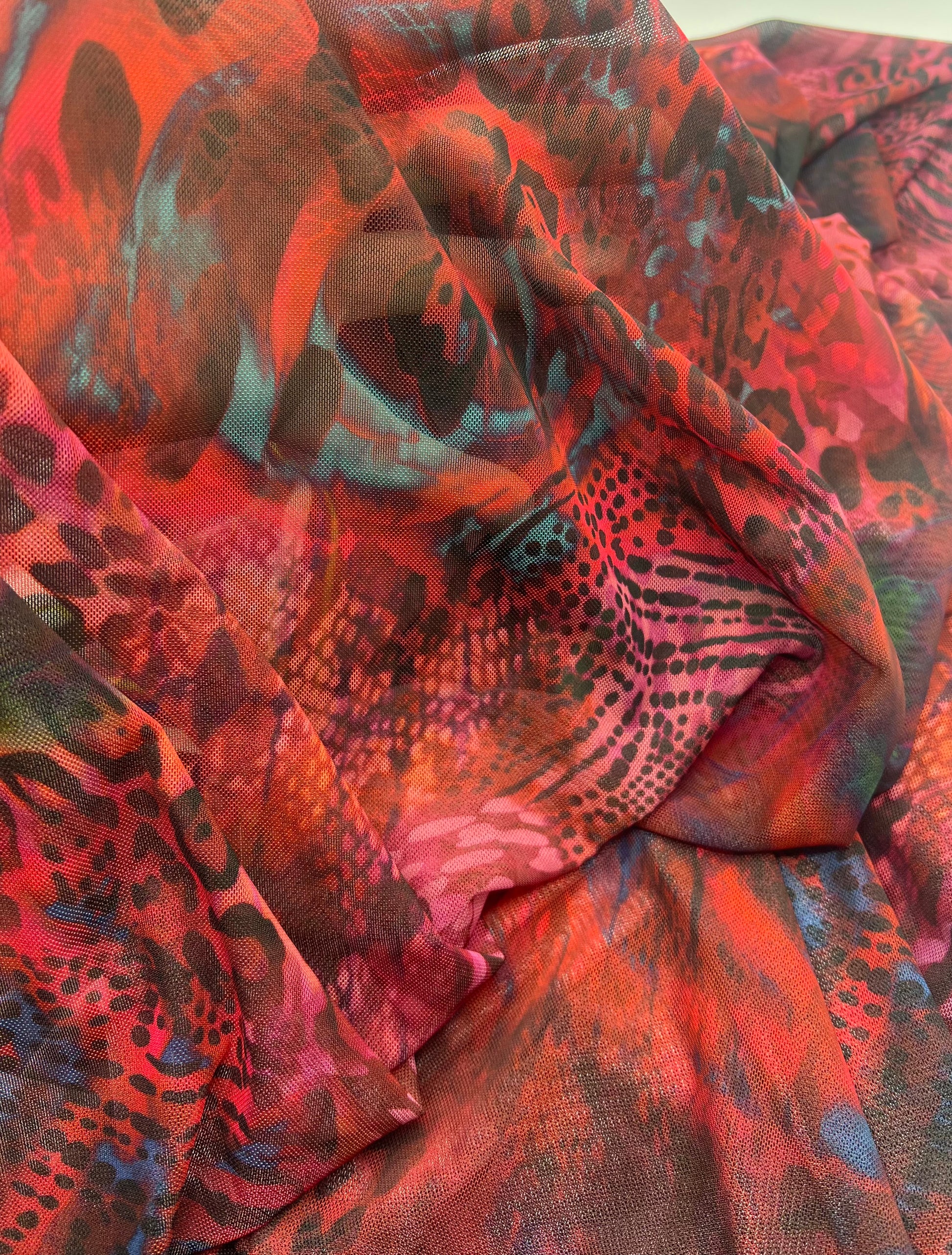 Red Rose Animal Mix Print Mesh Fabric Stretch is ideal for creating beautiful and unique garments. With its high-quality and stretchy properties, this 140cm wide fabric is perfect for overlaying on any outfit. Don't forget to check out our in-stock lining options for a flawless finish.
